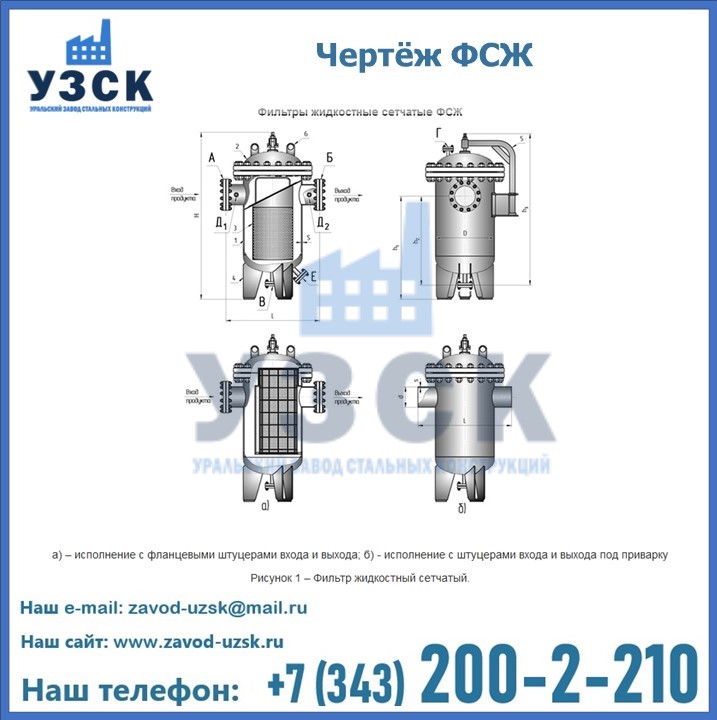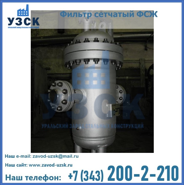 Очистку перекачиваемых жидкостей на предприятиях нефтяной, пищевой, горнорудной, фармацевтической и других отраслей промышленности эффективно выполнять с помощью жидкостного сетчатого фильтра — емкостное оборудование цилиндрической формы со съемной крышкой и элементом фильтрации внутри. Оснащенные им всасывающие линии насосных станций и установок защищены от проникновения твердых частиц в функциональные узлы гидравлической системы. Оборудование служит для перекачивания токсичных, агрессивных и иных эмульсий, суспензий, жидкостей. Купить фильтр сетчатый жидкостный ФСЖ в Жаркенте с гарантией производителя предлагает «Уральский завод стальных конструкций». Мы выполняем проектирование и изготовление ФСЖ по индивидуальным требованиям (климатическая зона, транспортируемая жидкость).