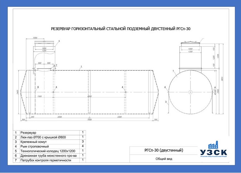 РГСДн-30: горизонтальный резервуар двустенный наземного расположения;