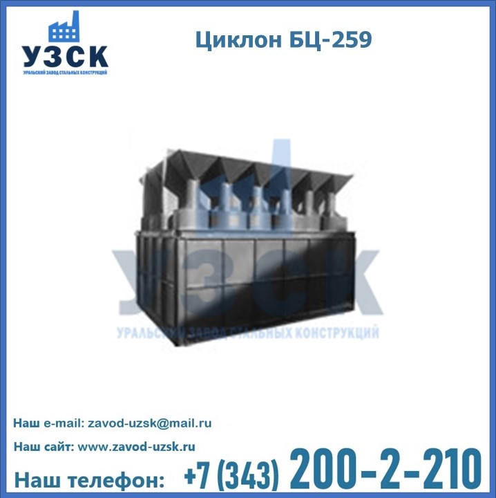 Приобрести качественное оборудование, в том числе, циклоны БЦ-259, можно в компании УЗСК в Жаркенте. Мы предлагаем долговечную и надежную продукцию по приемлемой цене. Заказать и купить циклоны или другие изделия высокого качества можно через сайт Уральского Завода Стальных Конструкций, или позвонив по указанному в разделе «Контакты» телефону.