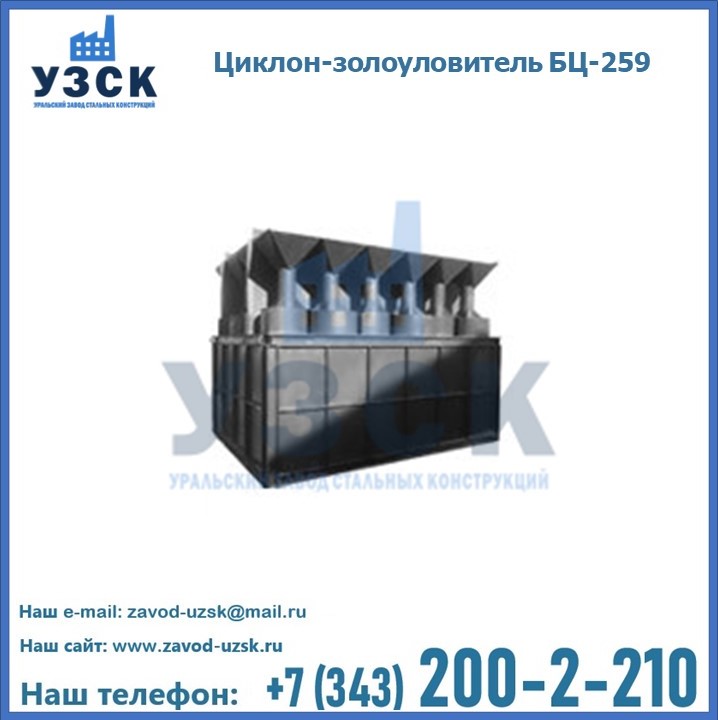 Если вы планируете купить то или иное оборудование, например, циклоны-золоуловители БЦ-259, то рекомендуем заказать данный товар на сайте УЗСК. Мы производим и реализуем продукцию высокого качества по приемлемой цене. Эксперты Уральского Завода Стальных Конструкций в Жаркенте проконсультируют вас по всем вопросам, помогут сделать выбор и оформить заказ без лишних временных затрат. Мы гарантируем соответствие нашей продукции всем требованиям ГОСТ и ТУ, а также износостойкость и высокую производительность предлагаемого оборудования. Если требуется изготовить циклон нестандартных размеров, то такой вариант выполнения заказа тоже предусмотрен, так как предприятие имеет собственные производственные площади и надежных поставщиков. На все поставляемое или производимое оборудование имеются чертежи и прочая техническая документация. Заказать и купить циклоны или прочее оборудование высокого качества и по доступной цене можно через наш сайт или по указанному в разделе «Контакты» телефону.