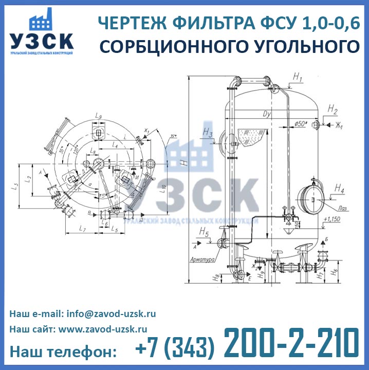Наш завод (Уральский завод стальных конструкций) является производителем угольных фильтров, сам осуществляет изготовление и реализацию выпускаемой продукции. Приобретая фильтры ФСУ-1.0-0.6 в Жаркенте от производителя, Вы приобретаете оборудование без наценок всевозможных посредников, а также значительно экономите свое время. Фильтры ФСУ1.0-0.6 завода УЗСК – это гарантия качества, кратчайшие сроки изготовления и цена, которая Вам понравится.