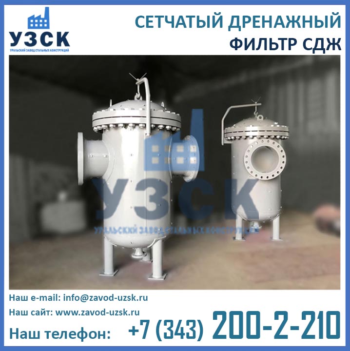 На формирование цены дренажного фильтра влияют следующие факторы: материальное исполнение, конструктивное исполнение, стоимость сырья в момент изготовления, комплектация, необходимость доставки в другой населенный пункт, срочность выполнения работ по изготовлению, прочие предпочтения заказчика. Уральский завод стальных конструкций изготавливает фильтры СДЖ-700 любого типового исполнения, а также нестандартные фильтры СДЖ 700 мм по чертежам заказчика или техническому заданию. Дополнительно к фильтрам СДЖ у нас Вы можете заказать сменные фильтрующие элементы любой тонкости фильтрации, ответные фланцы, прокладки и крепеж. По запросу изготавливаем также фильтры СДЖ-К-700 с концевым затвором. Для того чтобы узнать какова цена на фильтр СДЖ Ду700 в Жаркенте с необходимыми Вам характеристиками, отправьте запрос в отдел продаж завода УЗСК по координатам, указанным в разделе «Контакты».