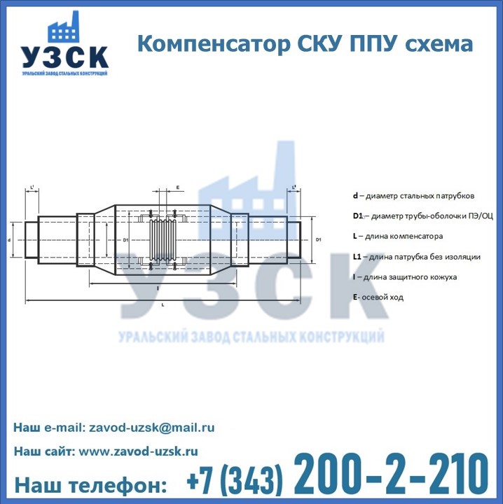 Уральский Завод Стальных Конструкций в Жаркенте предлагает готовые изделия, а также вы можете приобрести компенсатор СКУ ППУ под заказ. Наш завод располагает всем необходимым оборудованием для производства нестандартных позиций компенсатора СКУ в ППУ изоляции. Завод «УЗСК» предлагает большой выбор качественных и надежных компенсаторов СКУ ППУ, полностью укомплектованных и готовых к эксплуатации. Мы гарантируем соответствие нашей продукции всем требованиям ГОСТ и ТУ, износостойкость и высокую производительность. Наше предприятие поставляет и производит оборудование, имеющее длительную гарантию и большой эксплуатационный ресурс. Если вы хотите заказать сильфонные компенсационные устройства СКУ ППУ или другое оборудование с доставкой, наши специалисты помогут рассчитать стоимость транспортных расходов и организуют доставку товара. Вы можете оформить заказ на продукцию на нашем сайте, для этого достаточно заполнить форму обратной связи.