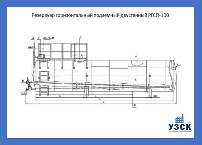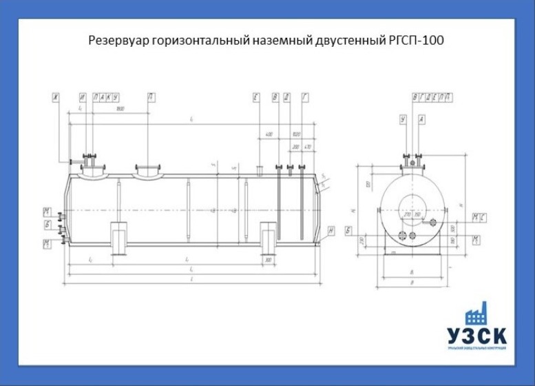 РГСДн-100: горизонтальный резервуар двустенный наземного расположения;